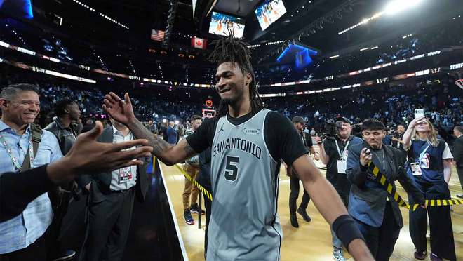 文班亞馬榮膺年度最佳新秀,而斯蒂芬·卡斯?fàn)柕募用艘沧岏R刺隊(duì)連續(xù)兩個(gè)賽季由新秀球員獲得該獎(jiǎng)項(xiàng)。此外,馬刺隊(duì)還在2025年NBA選秀大會(huì)上以第二順位選中了迪倫·哈珀。盡管圣安東尼奧的后場(chǎng)陣容深度雄厚,這位來(lái)自羅格斯大學(xué)的球員已經(jīng)開(kāi)始展現(xiàn)出自己的實(shí)力。
